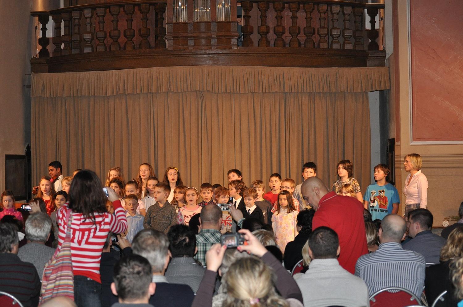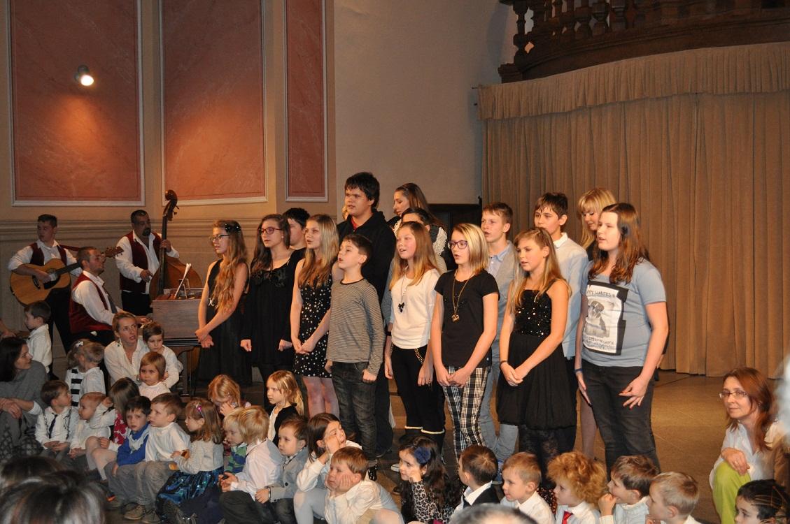 Program byl zahájen hudebním vystoupením dětí z mateřské školy, z jejichž úst zazněly písně anglické i latinské. Písní Amazing Grace se k našim nejmenším přidali žáci 6. a 8. ročníku, kteří následně navázali zpěvem světoznámého hitu Johna Lennona Happy Christmas a populární písní Just give me a reason. Tou se rovněž s diváky rozloučili a uvolnili podium žákům 1. stupně, kteří společně prezentovali pásmo českých koled a vánočních písní, k jejichž doprovodu neváhali použít bubínků i netradičních nástrojů.