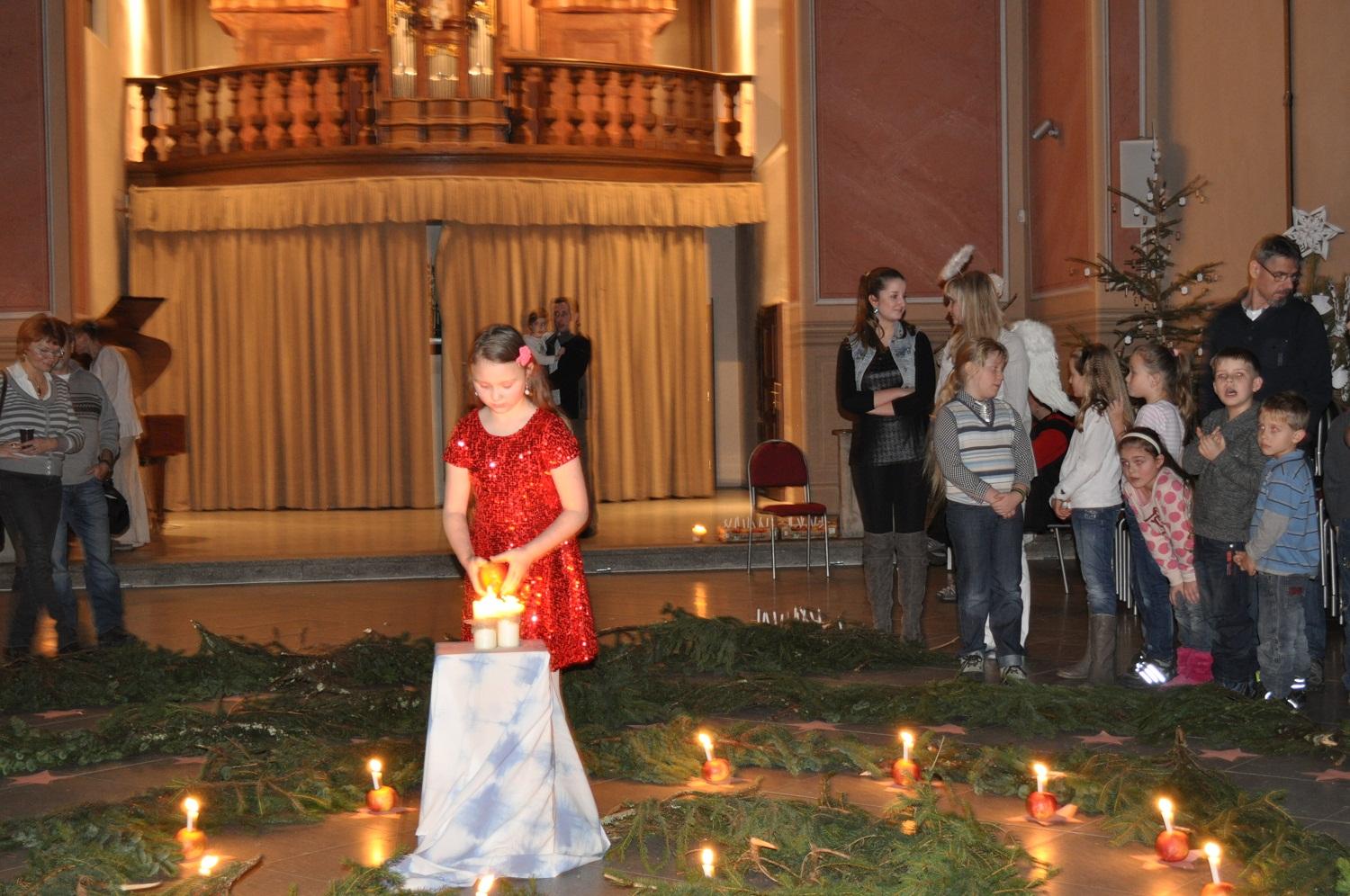 Závěrem samozřejmě nechyběla spirála z chvojí symbolizující cestu do nitra každého z nás, otevírající nám možnost ohlédnutí za rokem uplynulým a pohledem do roku nového, jíž si mohli v doprovodu anděla projít děti i se svými rodiči a v jejím středu si mohli zapálit svíci.