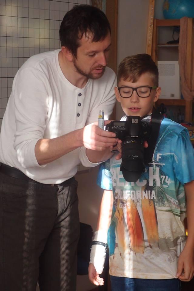 Učíme se od profesionálů. Na workshopu jsme se naučili základům práce s kamerou, zvukem a scénářem.