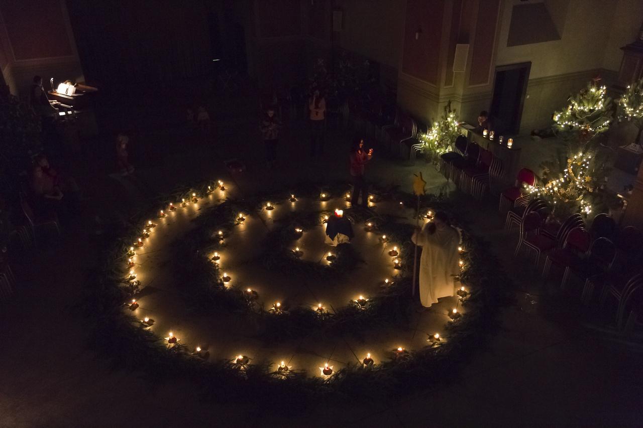 Bohatý program byl zahájen společným hudebním vystoupením dětí z mateřské školky, žáků 1. až 9. tříd a pedagogického sboru. Následovala Vánoční hra v podání učitelů stávajících i bývalých. Na závěr nesměla chybět spirála z chvojí symbolizující cestu do nitra každého, jíž si mohli v doprovodu anděla projít děti i se svými rodiči a v jejímž středu si mohli zapálit svíci. To vše s aromatickým svařeným vínem, čajem a drobným cukrovím, připraveným studenty Odborného učiliště v Horním Slavkově.