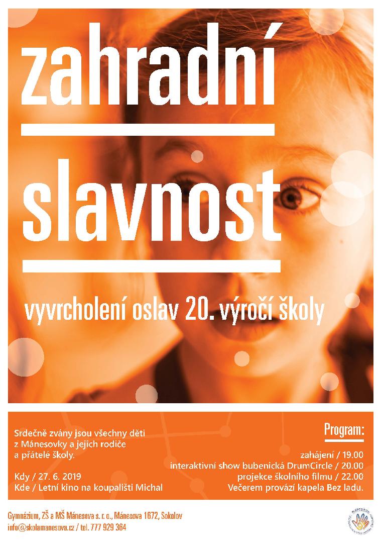 Zveme všechny děti a rodiče na Zahradní slavnost školy, která se koná 27. 6. od 19.00 na koupališti Michal.